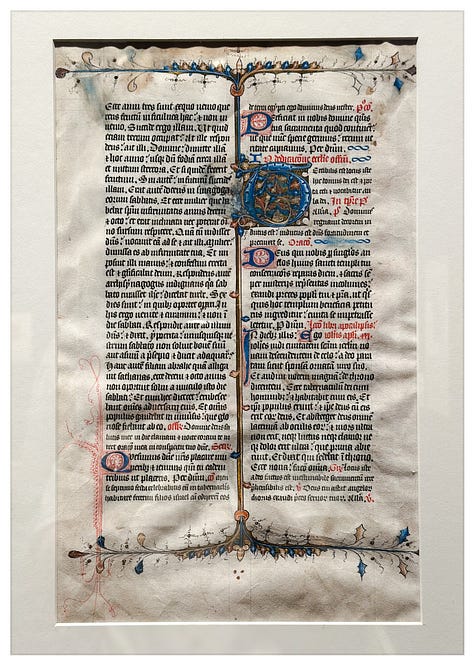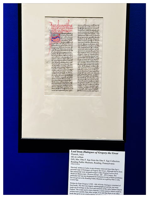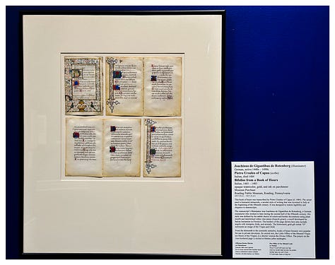 Last year, the History Museum of Mobile held an exhibition titled Painted Pages: Illuminated Manuscripts, 13th – 18th Centuries. It was a small show but it was sublime. The majority of the works shown in the exhibit dated from the thirteenth through the eighteenth centuries. The examples included texts in French, Italian, Spanish, Dutch, Flemish, English, and German as well as several non-Western examples. There was a seventeenth-century page from the Koran and Shahnameh (the illustrated Persian Book of Kings). The majority of the examples came to the Reading Public Museum through Otto Ege, a villain to some and a hero to others, he was a well-known Cleveland-area bookseller born in Reading, Pennsylvania.